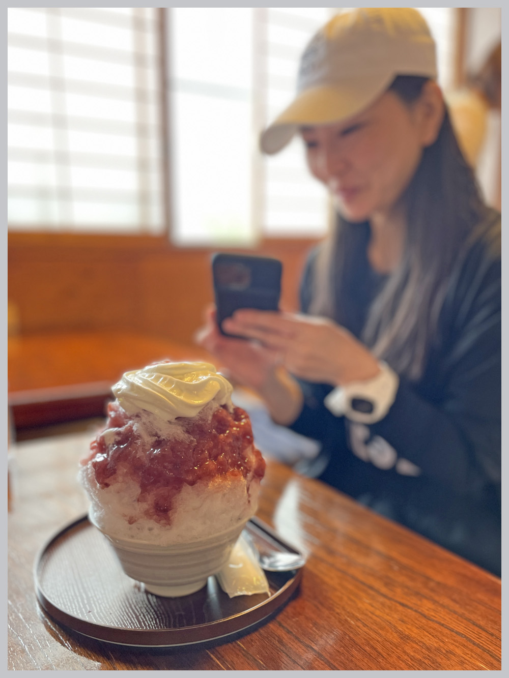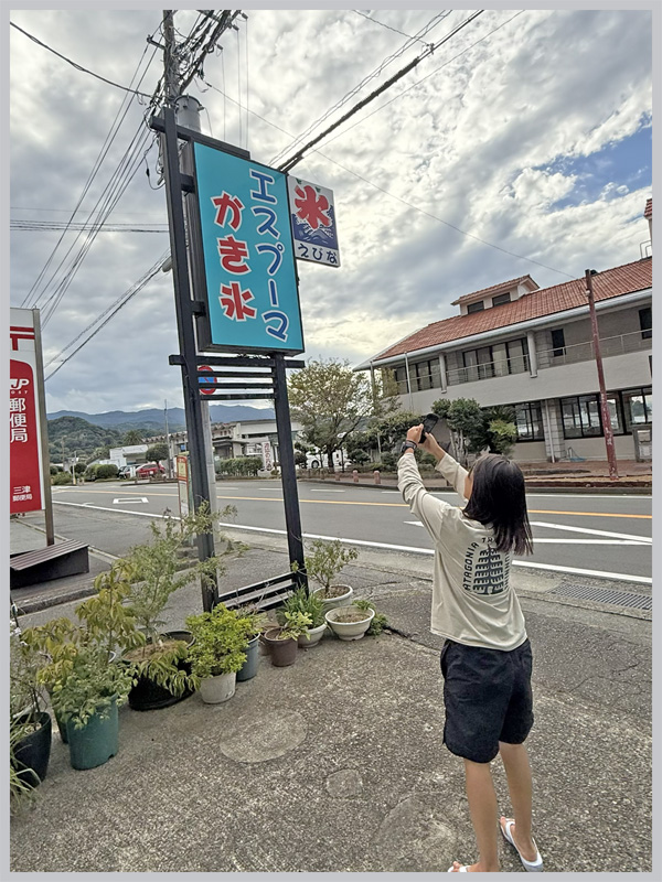 朝ごはん休憩するコンビニの前の「エスプーマかき氷」気になってるんだよね~