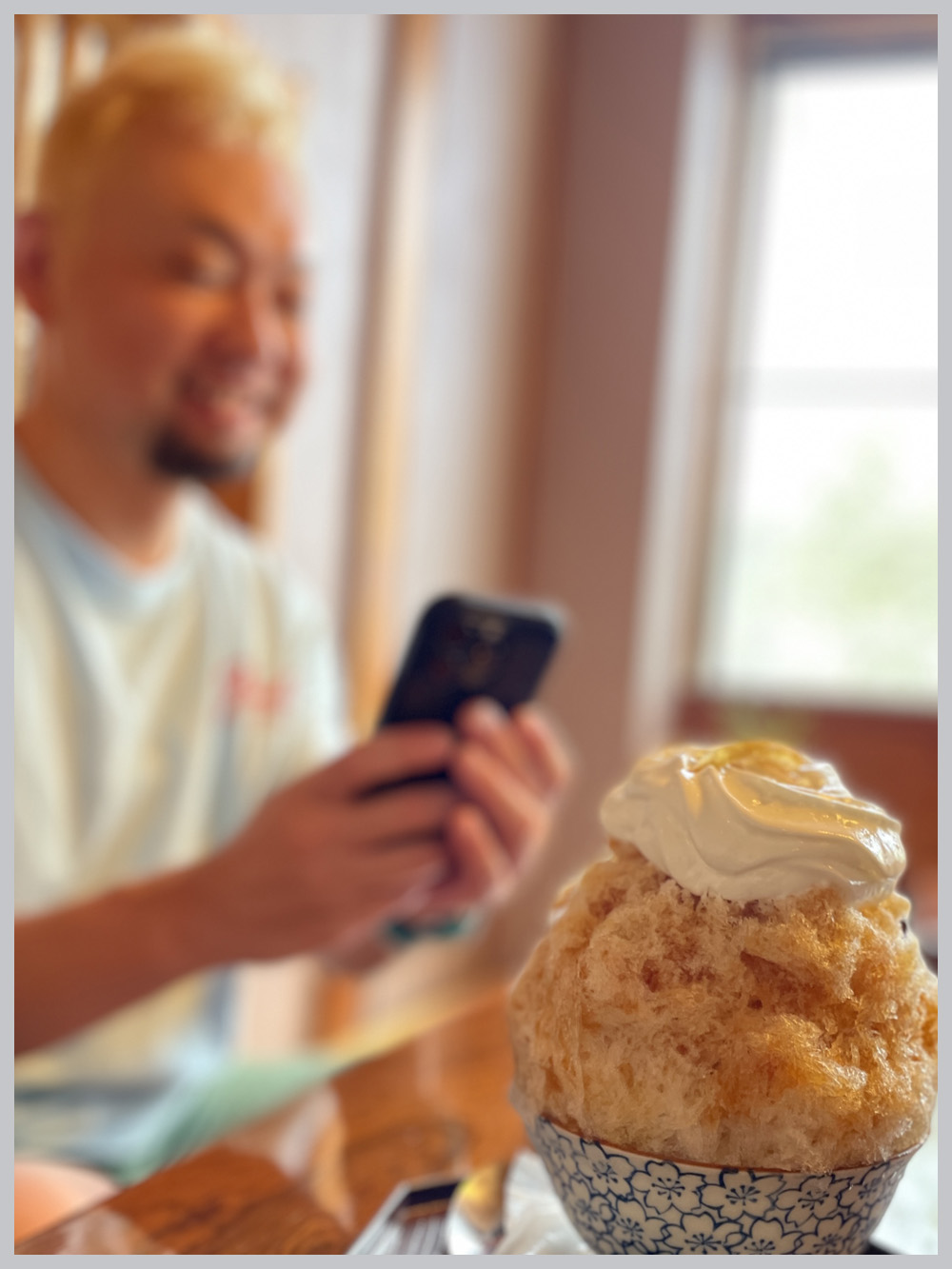 ふわっふわのかき氷にエスプーマ(スペイン語で泡)がのる