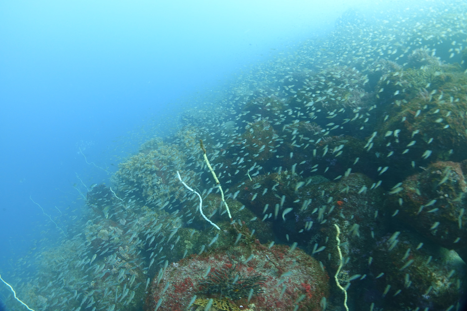 そこにネンブツダイがぐっしゃり、アカオビハナダイのコロニーも♪