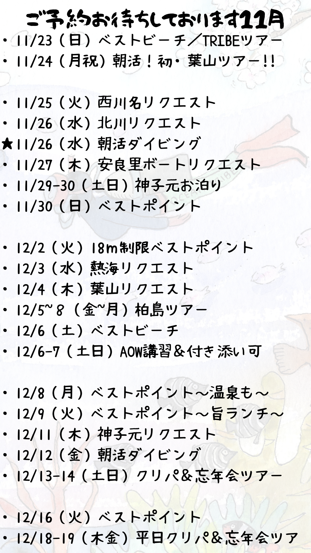 ご予約の最新情報お届けしております♪